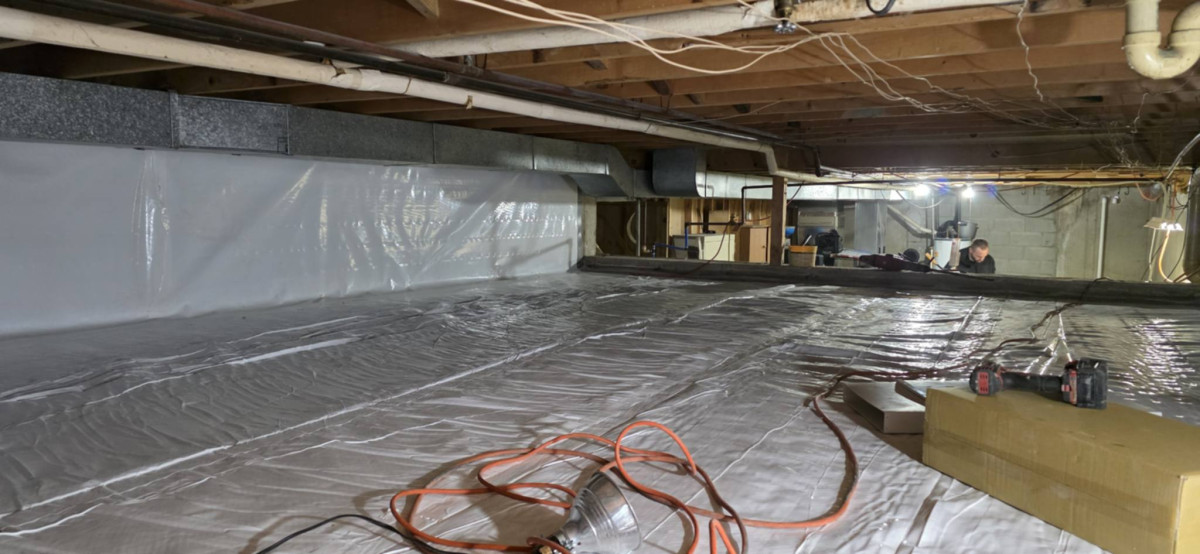 The modern solution to a sick crawlspace is encapsulation. This process involves sealing the floor and walls of the crawlspace with a heavy-duty, multi-layered antimicrobial vapor barrier. By completely isolating the home from the raw earth and outside humidity, we eliminate the source of moisture.