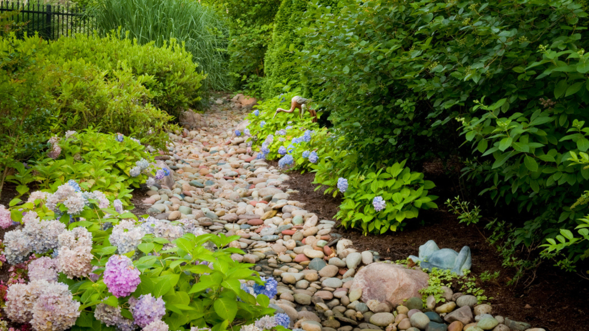 Spring cleanups, mulching and stone beds, irrigation maintenance and repairs, and French drain installation address the sustainability side of the discussion. Proper drainage integration, irrigation efficiency, and consistently maintained planting beds all contribute directly to the long-term health and visual quality of a residential landscape.