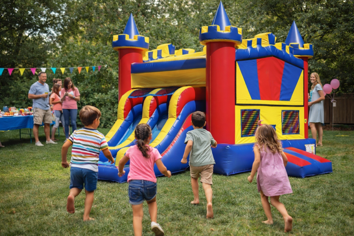Many gatherings now include interactive play areas designed to keep children engaged throughout the event. Backyard celebrations often feature sports activities, yard games, and entertainment features such as inflatable rentals, which provide structured spaces where children can remain active while adults enjoy the social side of the gathering.